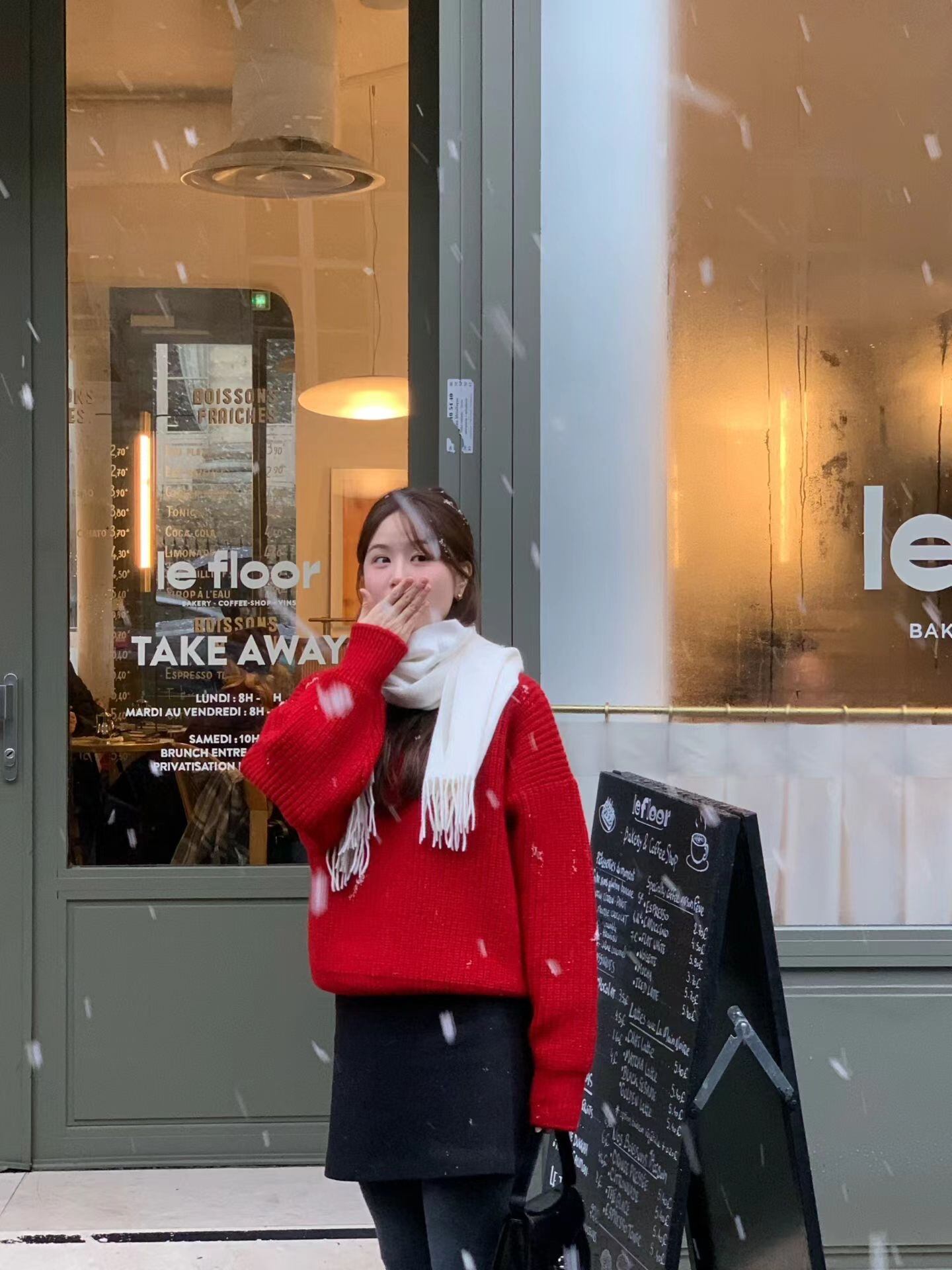 cream / red