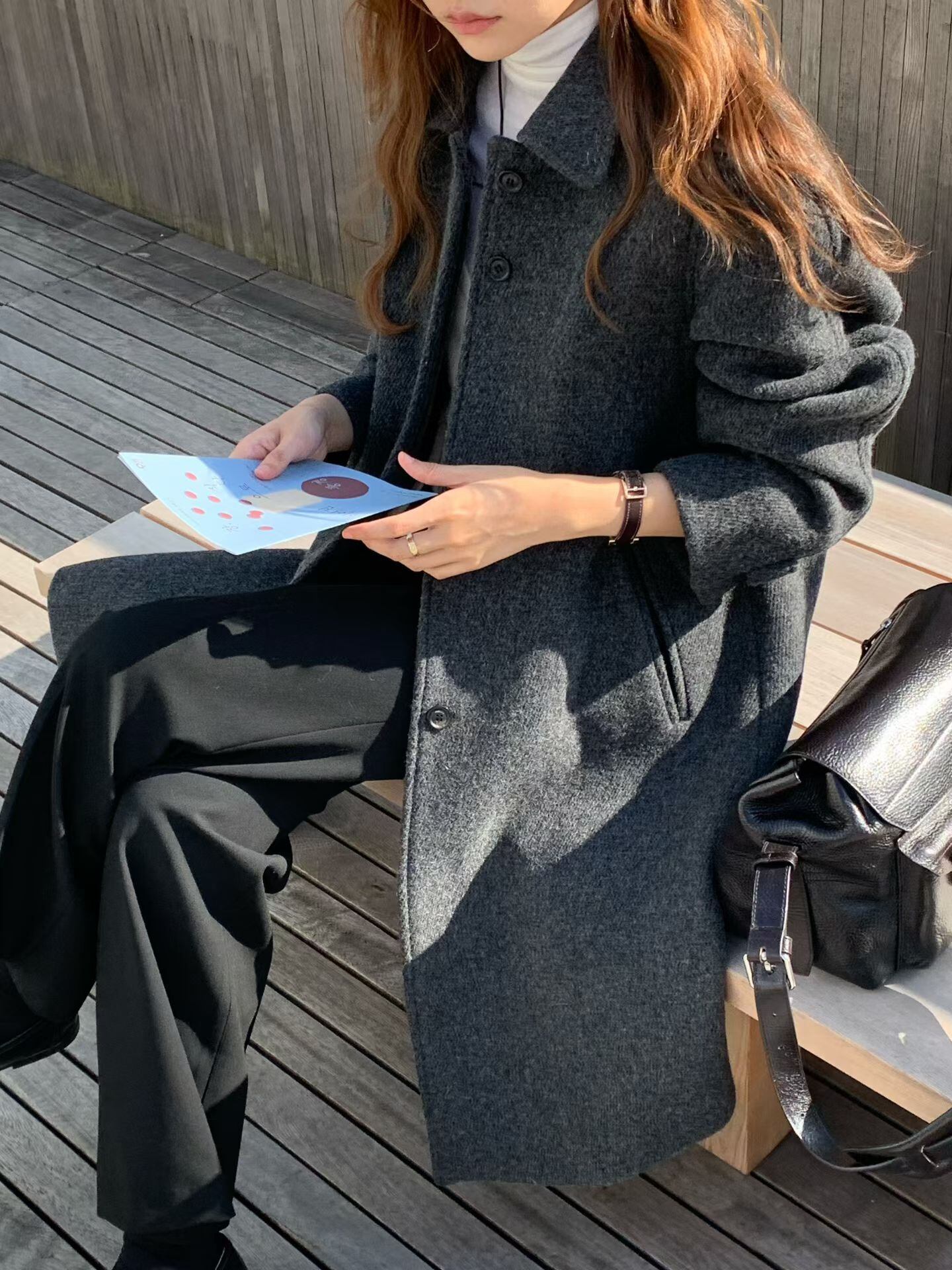 verveine luce wool twill melange coat