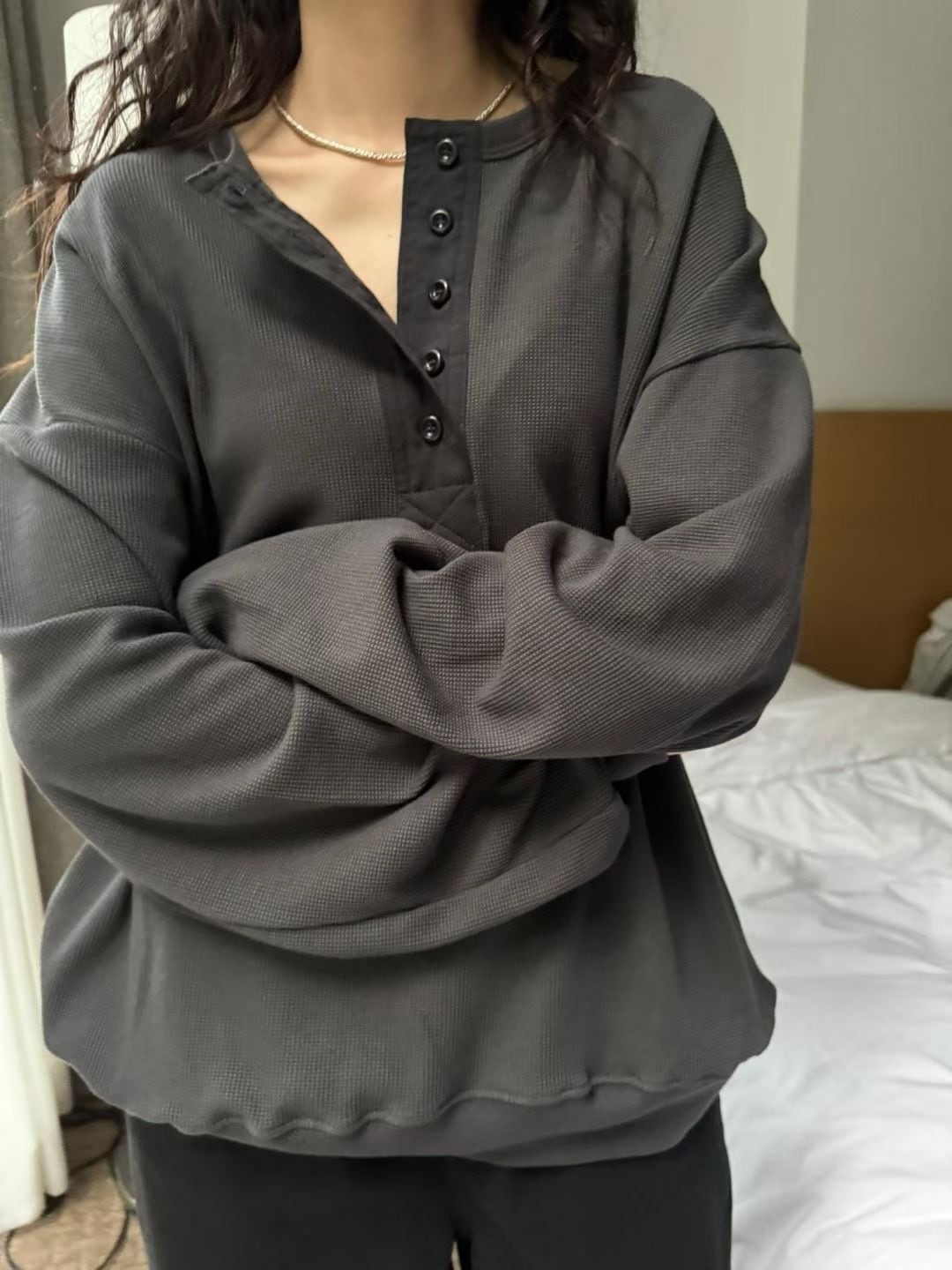 即納 taffeta waffle henly neck mtm 3colors